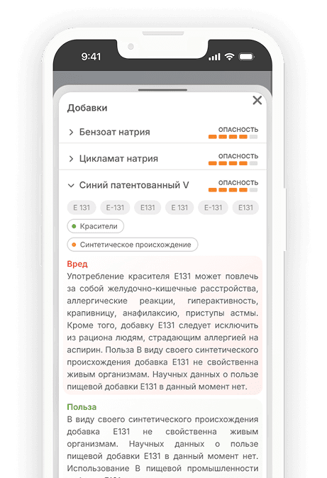 Pomelo выявляет опасные Е-добавки, сахар, консерванты, красители и аллергены и помогает понять, насколько продукт безопасен для вашего здоровья